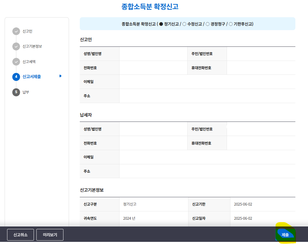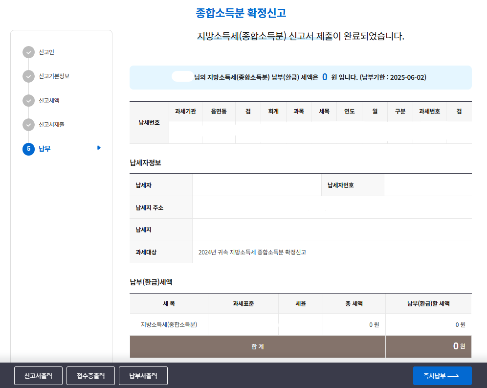 그리고 제출하면 끝입니다. 오늘(2025년 6월 2일)이 신고납부 마지막날 입니다.