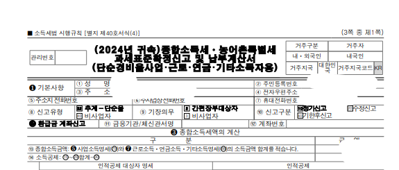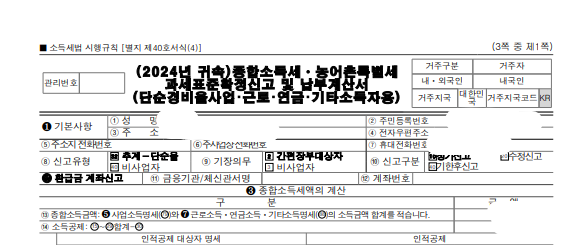 접수번호(신고서보기)의 접수번호를 클릭하면 아래처럼 종합소득세 신고서를 출력할 수도 있습니다.