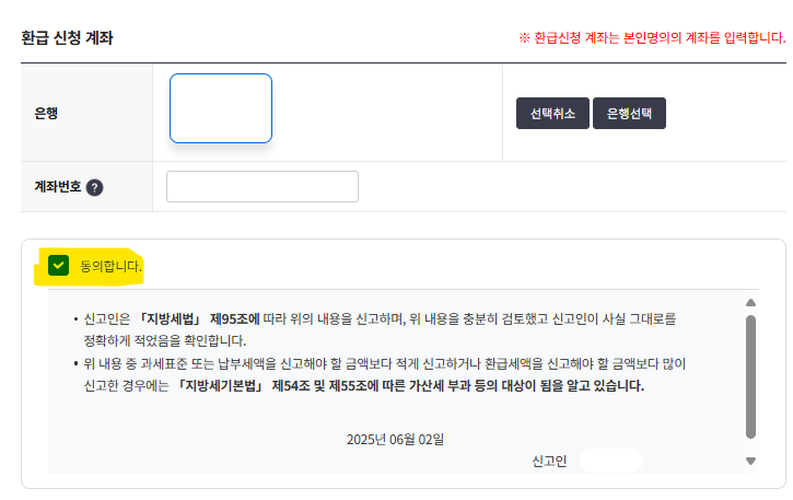 저는 납부세액 0원이고 환급금도 없고 납부할 세금도 없기 때문에 딱히 환급신청 계좌를 안넣어도 되지만 일단 넣어줬습니다.