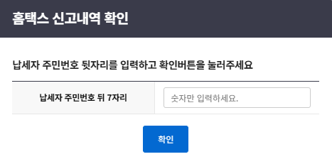 지방소득세 신고이동으로 들어가면 팝업창이 뜨면서 신고내역확인- 납세자 주민번호 뒤 7자리 숫자를 입력하라고 뜹니다.