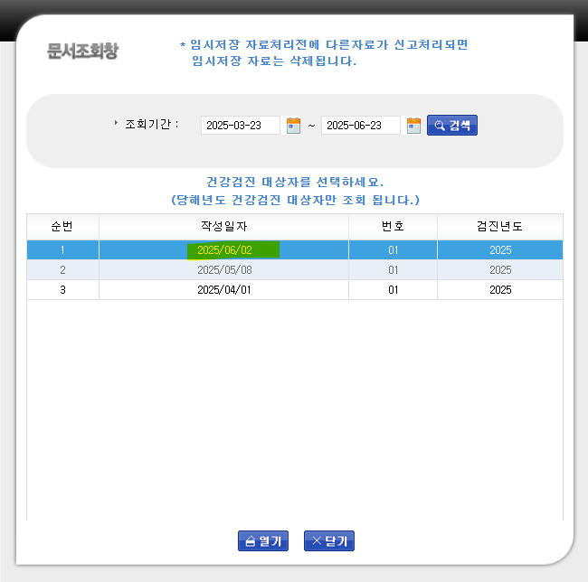 4. 작성일자가 최근으로 되어있는 것을 더블클릭합니다.