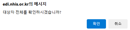 8. 입력완료를 누릅니다. 그러면 대상자 전체를 확인하시겠습니까? 라는 메세지가 뜹니다. 확인을 눌러줍니다.