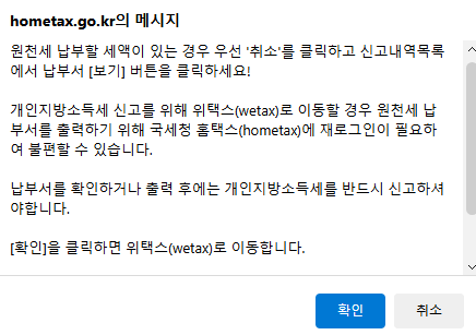 홈택스에서 원천세 신고를 진행한 뒤에 지방소득세 신고이동을 눌러 위택스로 이동합니다.