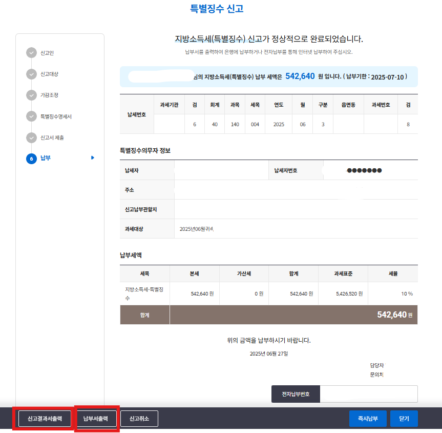 신고결과서출력 버튼을 눌러 지방소득세 신고서를 출력합니다.