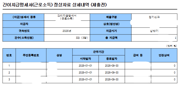 근로소득 간이지급명세서는 1~6월까지의 근로소득을 묶어서 신고하는 것인데요,