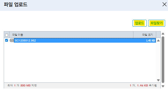 12. [파일찾기 > 해당파일 경로로 들어가서 파일선택 > 체크 후 업로드 ]