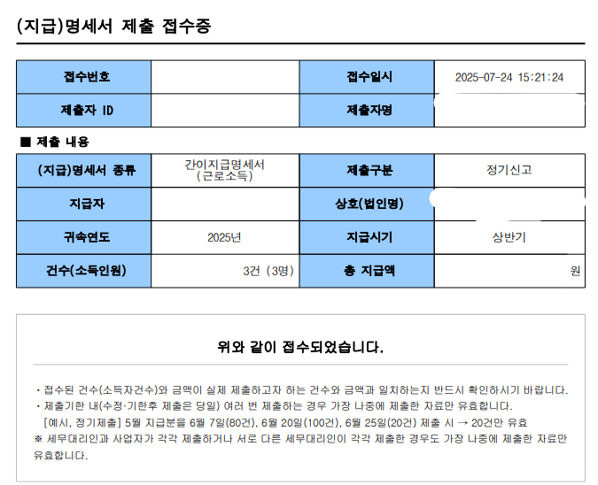 상반기 근로소득 간이지급명세서를 제출할 시기가 왔습니다.