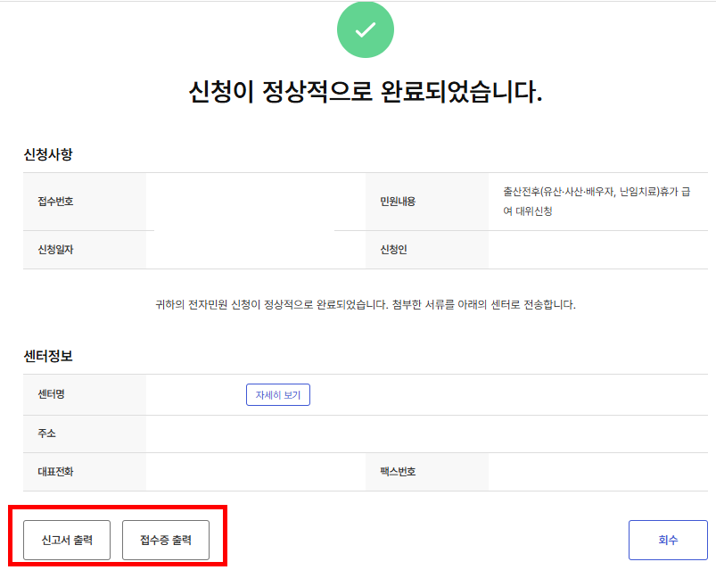신고서와 접수증을 출력하여 저장하고 보관해주세요.
