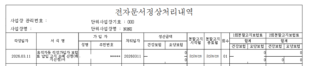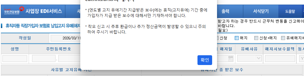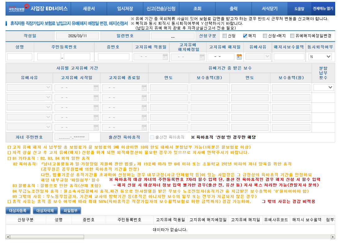 ! 주의 : 복귀 후 바로 퇴사인 경우에도 상실신고 이전에 납입고지유예 해지신청서를 먼저 제출 한 후 상실신고 해야 합니다.