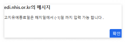 해지 체크하면 아래와 같이 알림창이 뜹니다.