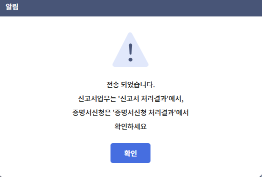 완료된 서류를 조회 후 출력을 누르면 아래와 같이 신고서가 출력됩니다.