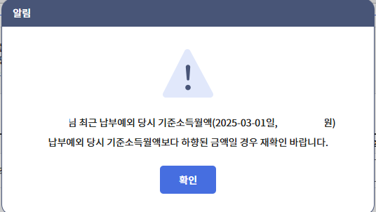 이전에 연금보수월액이 아니라 업데이트된 금액을 넣어줍니다. 그러면 이제 업데이트된 금액을 기준으로 연금보험료가 고지될 것입니다.