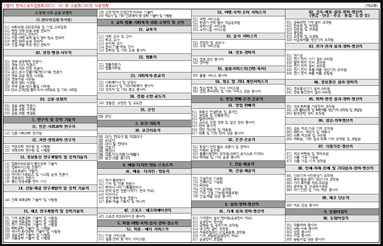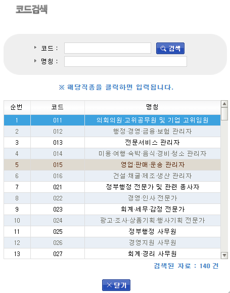 직종 검색할때는 명칭으로 검색하는 편이 편합니다.