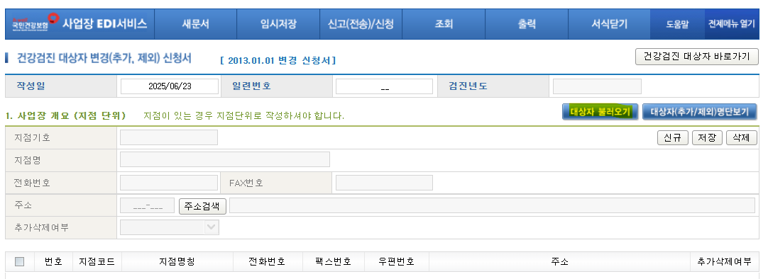 건강검진 대상자 변경(추가,제외)신청서 신규입사자 등록하기