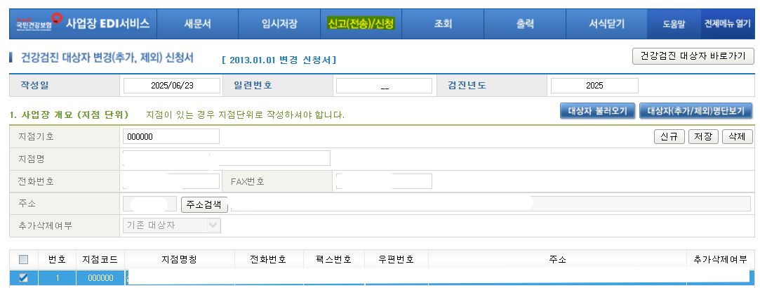 그러면 다시 아래처럼 건강검진 대상자 변경(추가,제외)신청서 화면으로 돌아가 집니다.