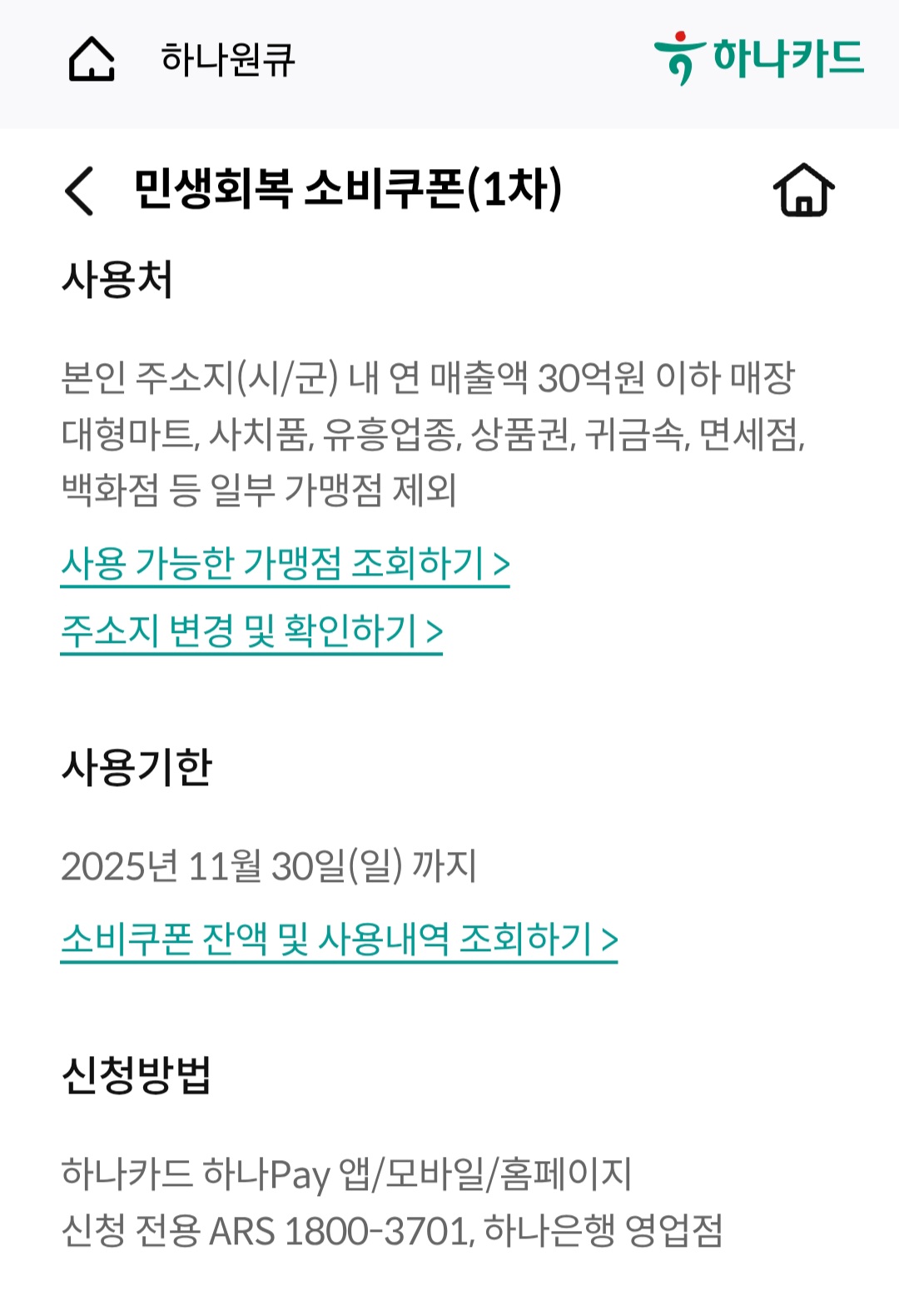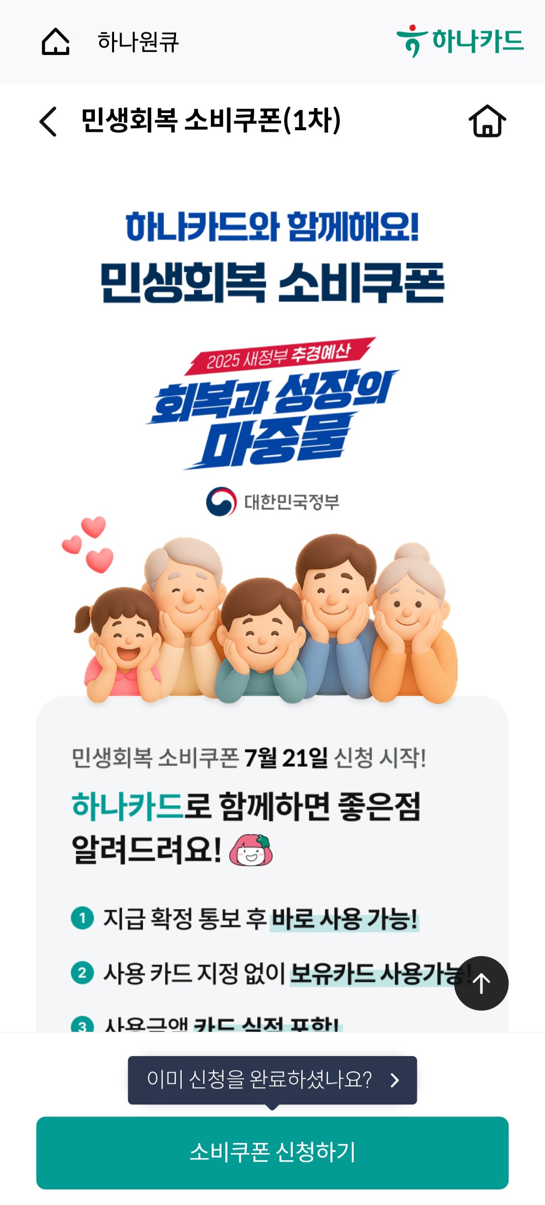 민생회복 소비쿠폰 하나카드로 신청하기!