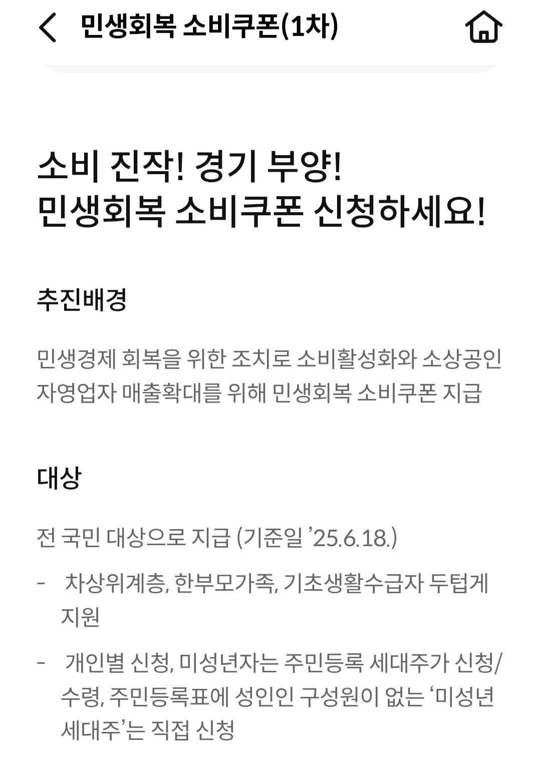 민생회복 소비쿠폰 1차신청기간인 이번주는