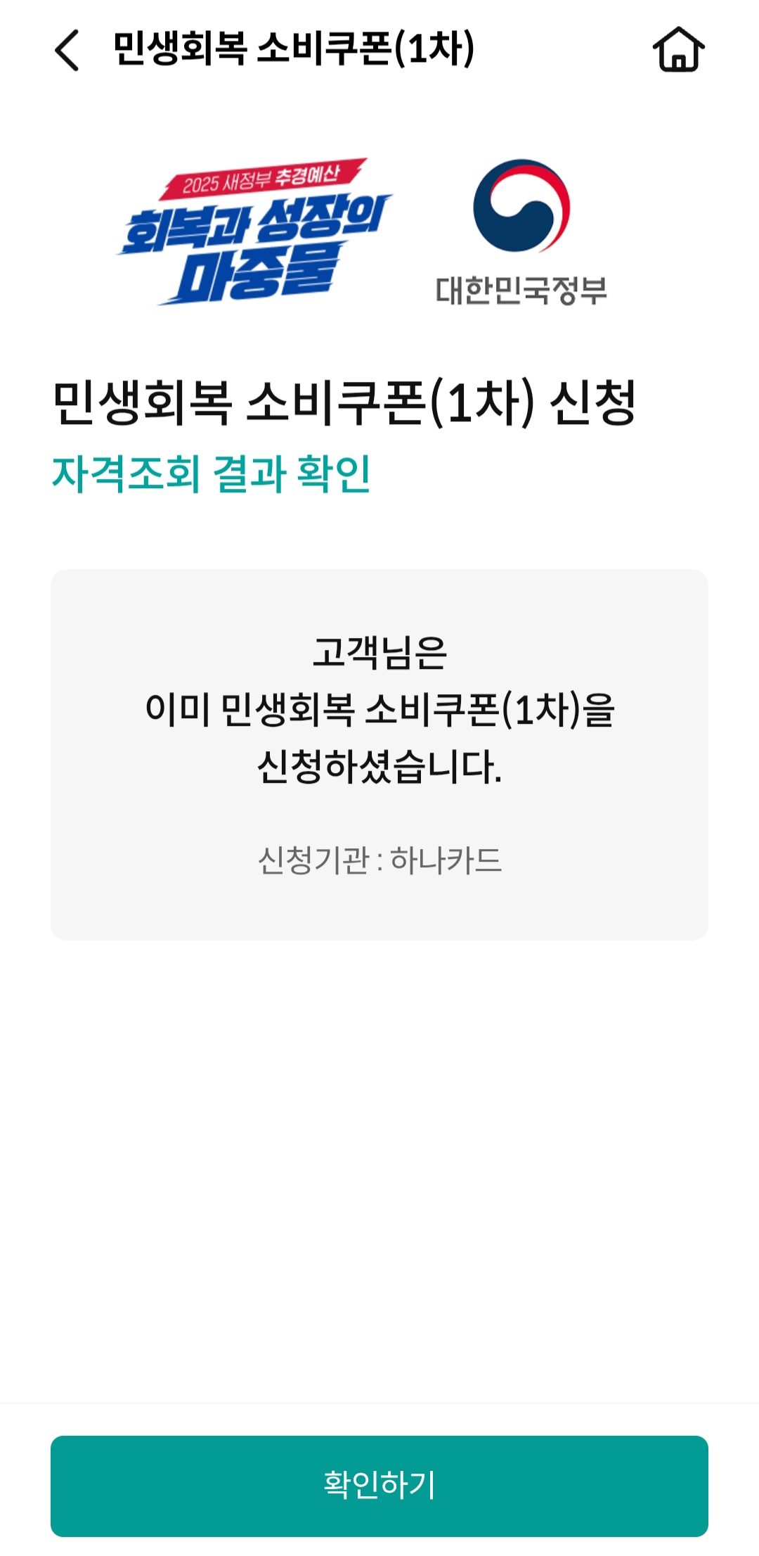 그럼 지금까지 민생회복 소비쿠폰 1차 신청을 하나은행 어플로 신청하는 방법을 알아보았습니다
