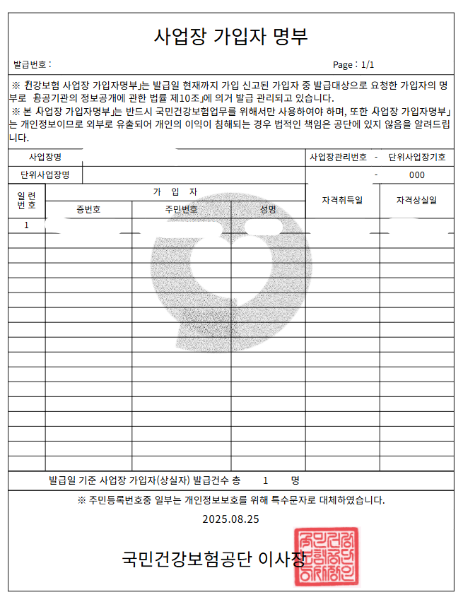지금까지 건강보험 사업장 가입자 명부를 출력하는 방법을 알아보았습니다.