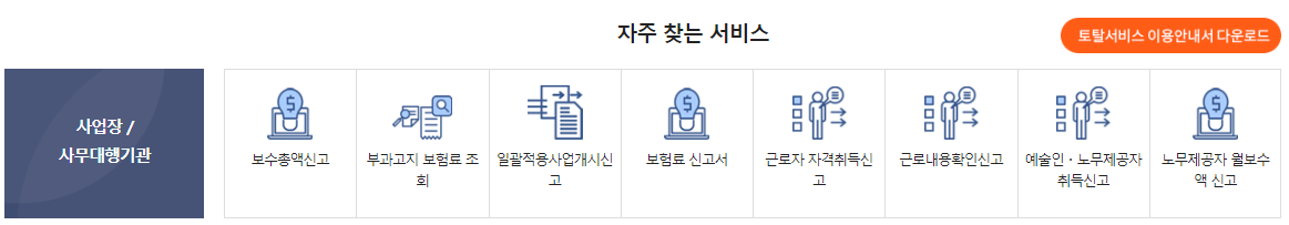 먼저 아래 첨부한 링크의 고용산재 토탈서비스 사이트에 접속합니다.